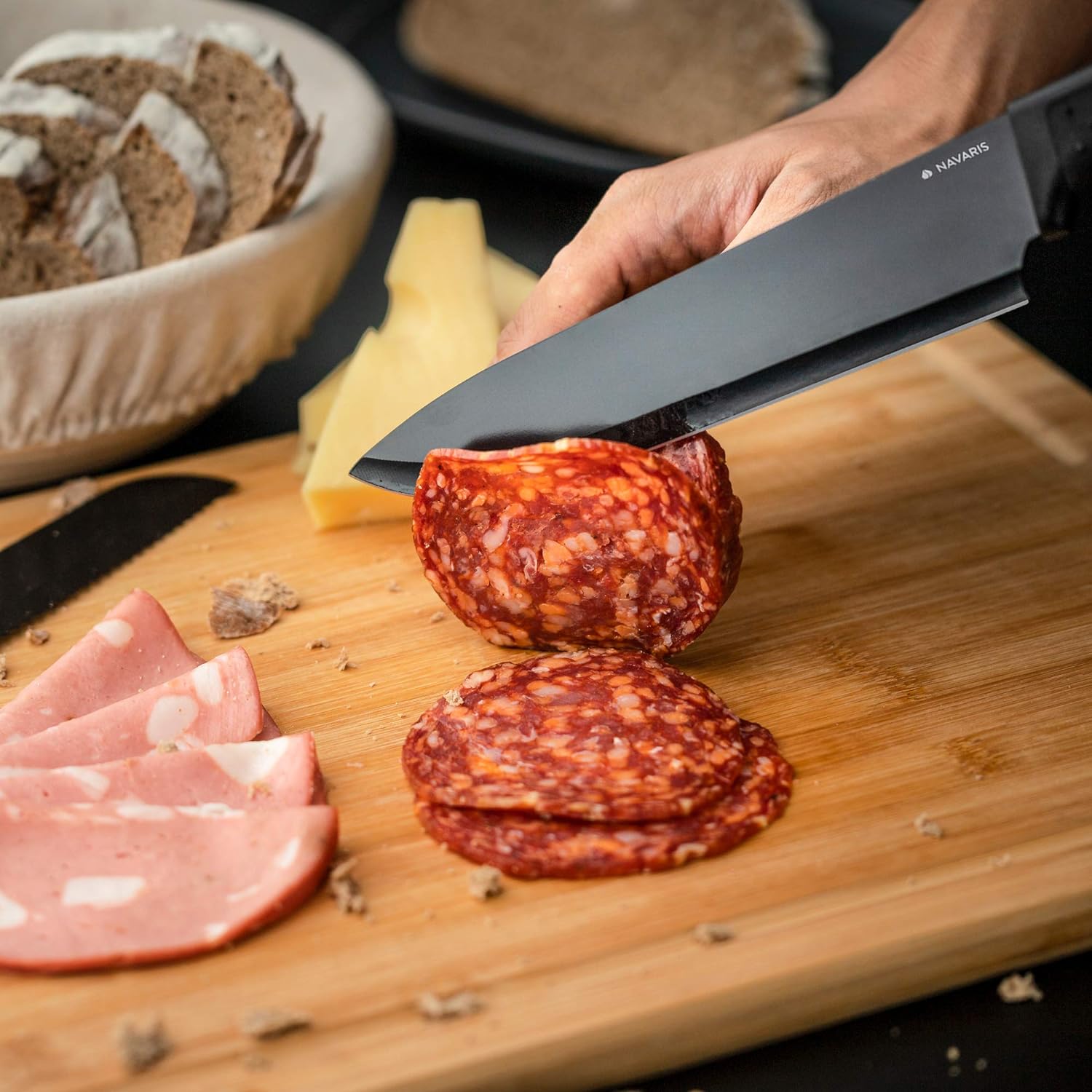 Wysokiej jakości noże do krojenia z ostrzem ze stali nierdzewnej firmy Navaris to wszechstronne narzędzie kuchenne.