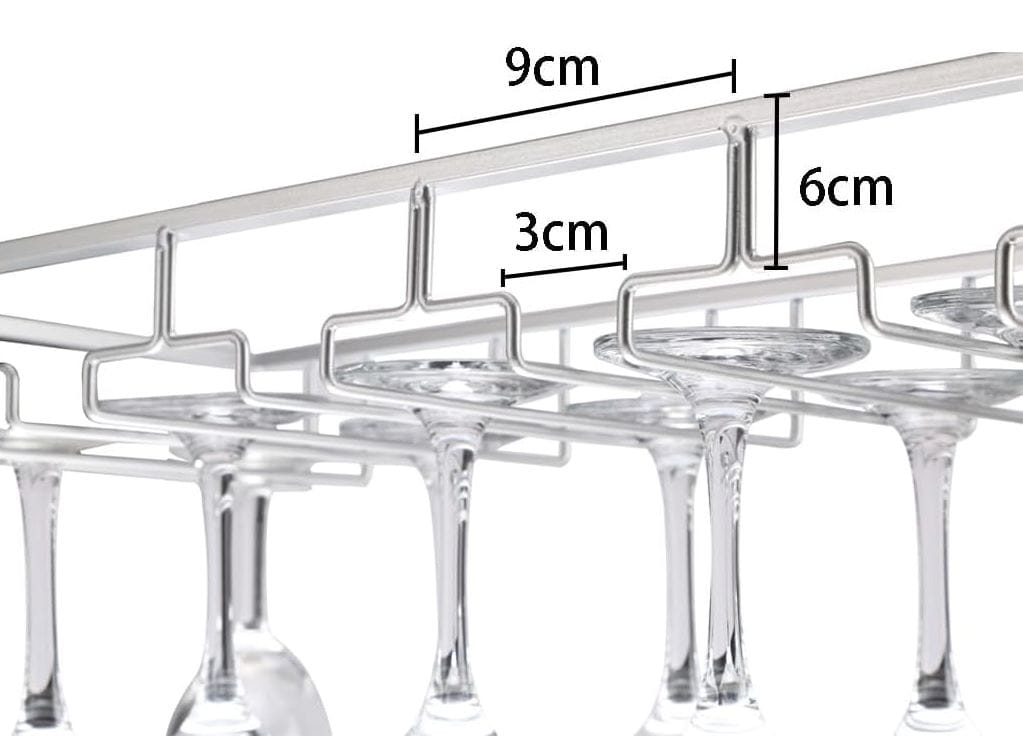 W zależności od wielkości kieliszka wieszak może pomieścić od 2 do 3 kieliszków do wina w każdym rzędzie.