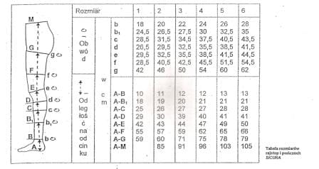Przed zamówieniem proszę dokonać pomiary zgodnie z tabelą rozmiarów.